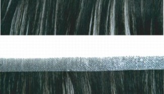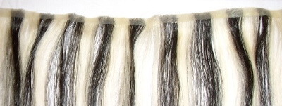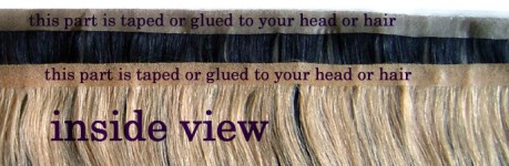 | weeks , and hair is reusable , comfortable to wear , Hair is not sewn onto a braided weft but a pre-taped seamless weft. The seamless weft can be attached by sandwiching the two strips together . Adhesive using a safe cold fusion method of application. | ||||||||||||||||||||||||